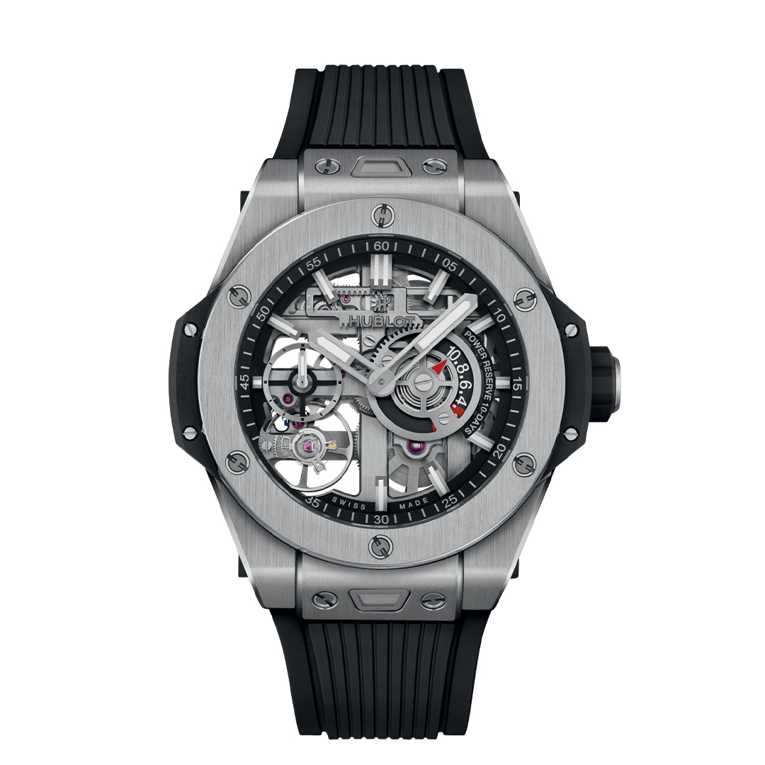 The original Big Bang MECA-10 broke all the rules upon its release 2016 with its unique form, consisting of a ring-shaped base plate onto which the bridges are attached. The result was one of visual intrigue and structural integrity. Now, Hublot revisits this unique take on the manual-winding skeleton movement with a refined, open and coherent display, while maintaining its distinctive construction that’s elevated with refined finishing and decoration. For the engineers and watchmakers at Hublot, the challenge was to preserve all that makes the MECA-10 so original, while reducing its dimensions to fit the 42mm Big Bang case without compromising its performance.