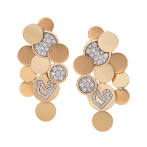 /nEnchanté long drop earrings in 18Kt pink gold, diamonds and red coral