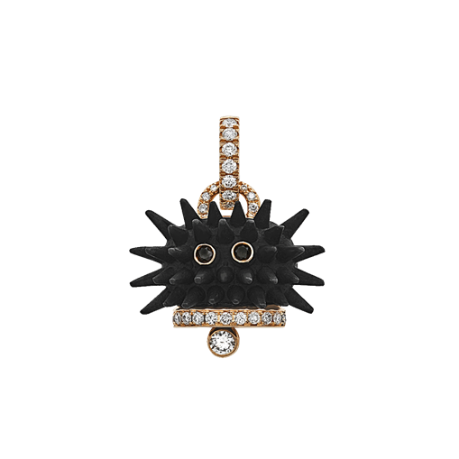 Medium Campanella Urchin charm in 18Kt pink gold, diamonds, black diamonds and black titanium