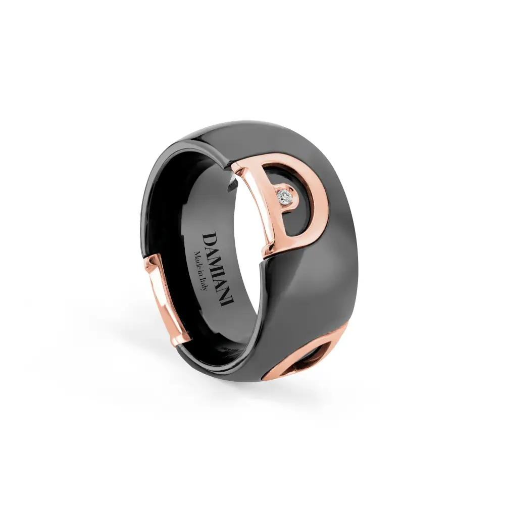 D.Icon Black Ceramic Pink Gold And Diamond Ring