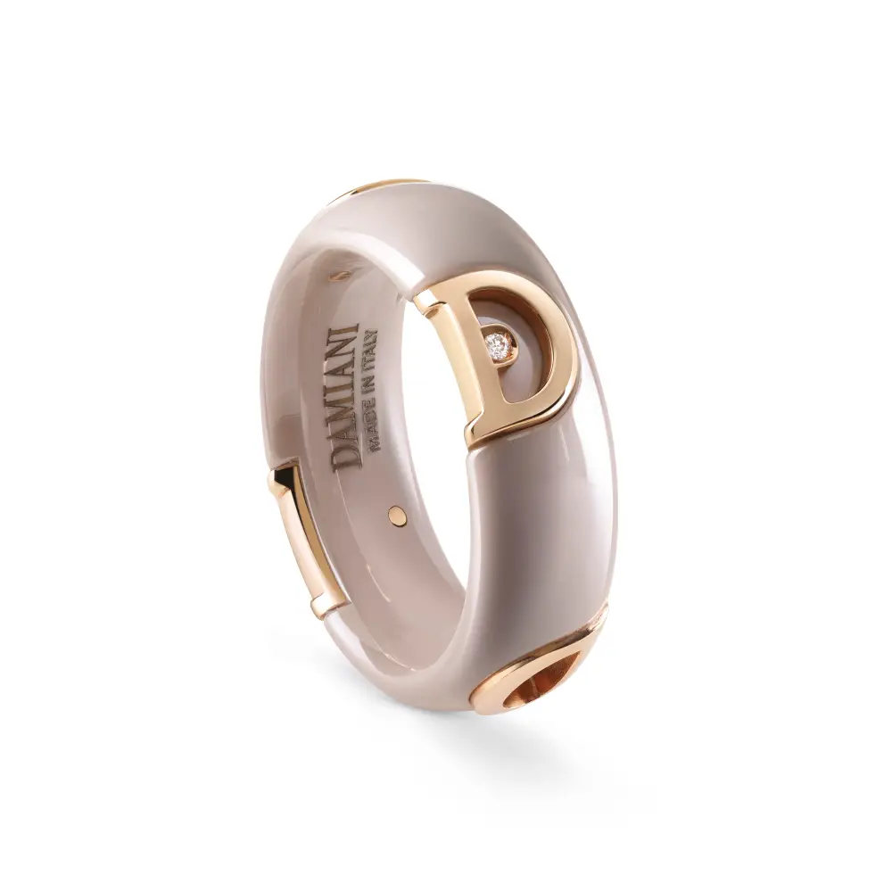 D.Icon Cappuccino Ceramic Pink Gold And Diamonds Ring