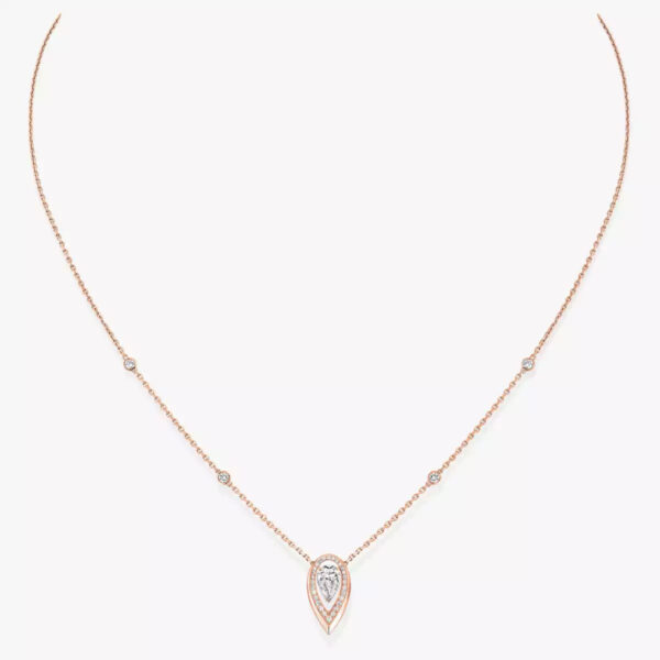 A women’s diamond necklace that’s not lacking in character! Showcase your personality around your neck with this luxury jewelry piece from the Fiery collection! The pear-cut diamond, in all its sensuality and delicacy, embraces the neck, surrounded by a gradient diamond pavé setting and sharp, resolutely assertive gold. A play of contrasts and character are the order of the day with this daring women’s diamond necklace, which is as original as it is timeless!
