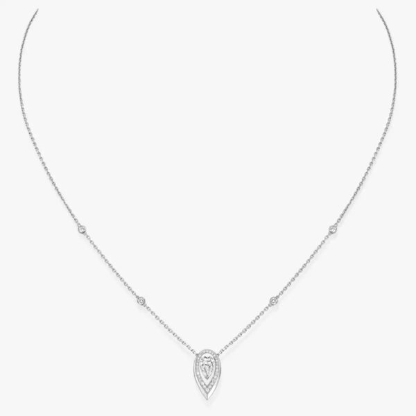 A piece of women’s diamond jewelry that won’t go unnoticed! With this diamond necklace that’s bursting with boldness and character, you’ll be the star of all your most beautiful moments! The pear-cut diamond embodies this characterful jewelry creation in all its sensuality and delicacy. It is amplified by a pavé setting, which is enhanced by a pointed solid gold band with resolutely assertive contours. Together, they give the Fiery gold and diamond necklace all its strength and contrast.