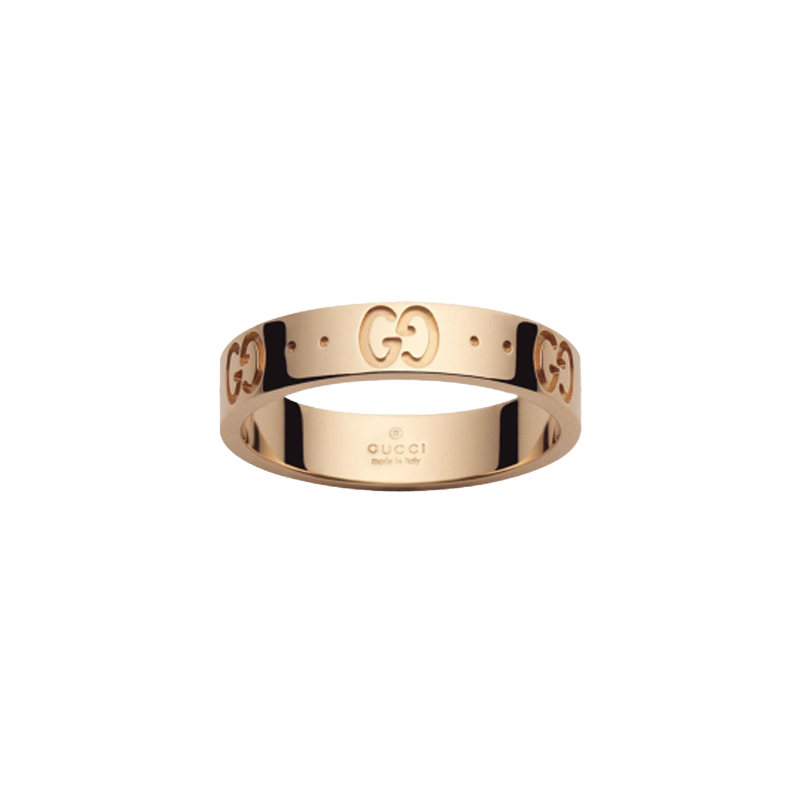 The emblematic GG pattern, symbolic of Guccio Gucci’s initials, is engraved onto this thin Icon ring crafted from 18k rose gold.