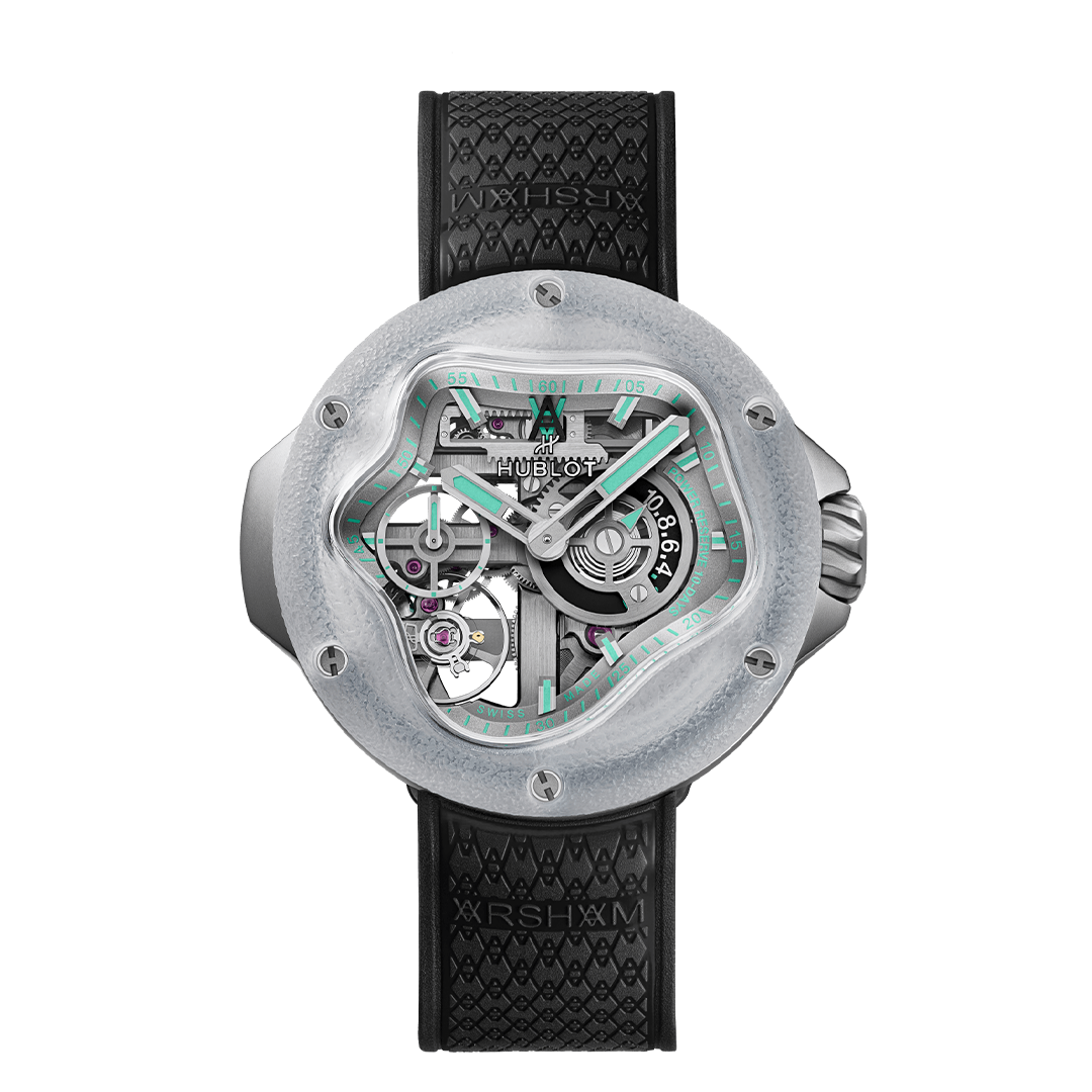 Limited to only 99 pieces, the Hublot MP-17 Meca-10 Arsham Splash Titanium Sapphire is available at Hublot boutiques and authorized retailers.