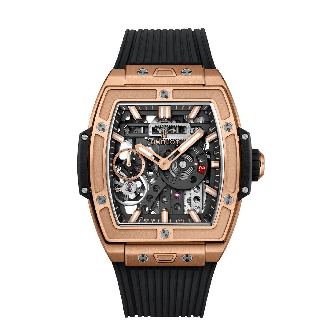 As a master of fusion and an alchemist of precious metals, Hublot has developed a new gold color with a warmer shade than the traditional 5N 18K gold. Containing mainly platinum, this exclusive King Gold alloy perfectly lends itself to all elements of polishing and satin finishing. Hublot watches blend the most unexpected materials like high-tech ceramic, rubber and carbon.