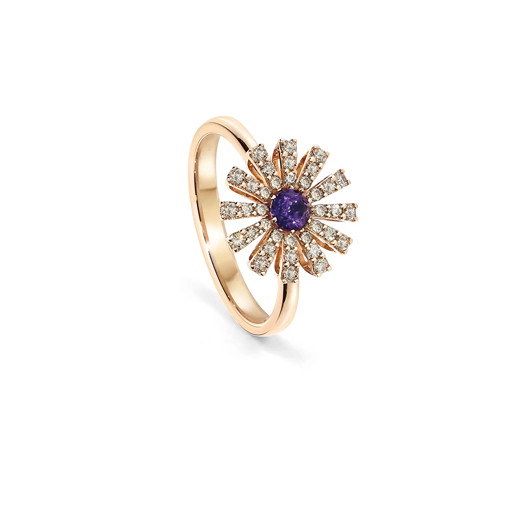 MARGHERITA Pink Gold Brown Diamond and Amethist Ring 12mm