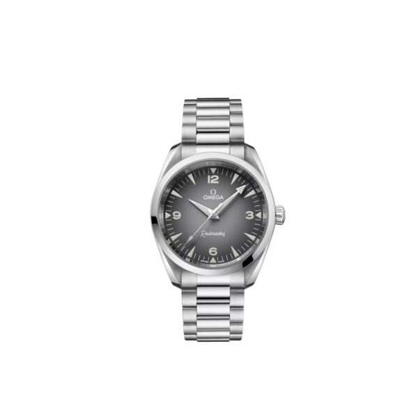 The symmetrical 38 mm case is brushed and polished, and is presented on an integrated bracelet that includes an easy comfort setting, as well as brushed and polished links. In keeping with the original Railmaster’s easy-to-read display, the dial of this model is grey with a black gradient, and features large numerals and hour markers in white Super-LumiNova.