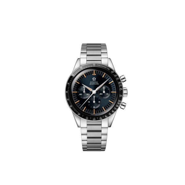 The 39.70 mm case is crafted in polished and brushed stainless steel and features a “flat links” bracelet with OMEGA’s patented comfort release adjustment system. The bezel ring is presented in black aluminium and includes the legendary tachymeter scale with an emblematic “Dot Over Ninety”.