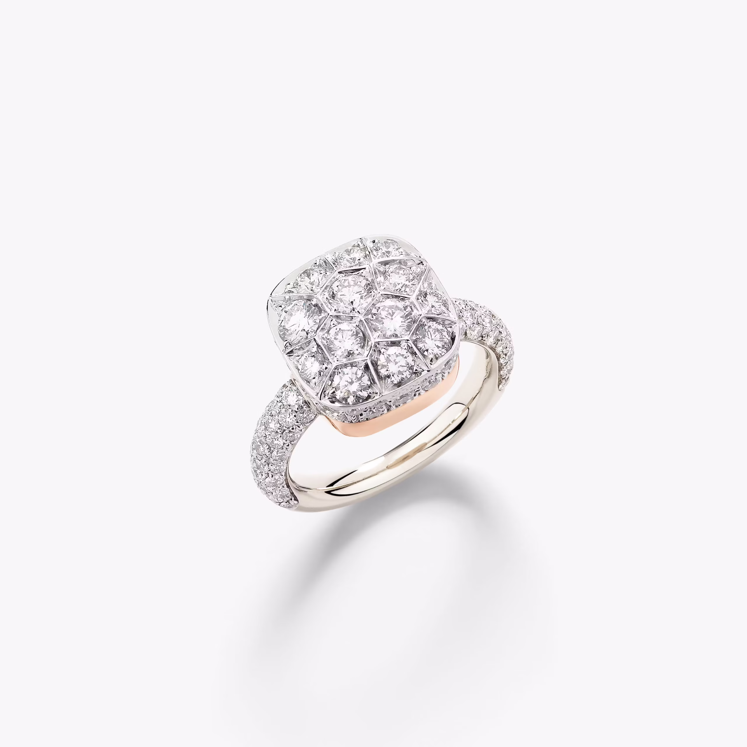 Ring in 18K white and rose gold with 106 white diamonds (≈2.2 cts) on 18K white rhodium-plated white gold.
