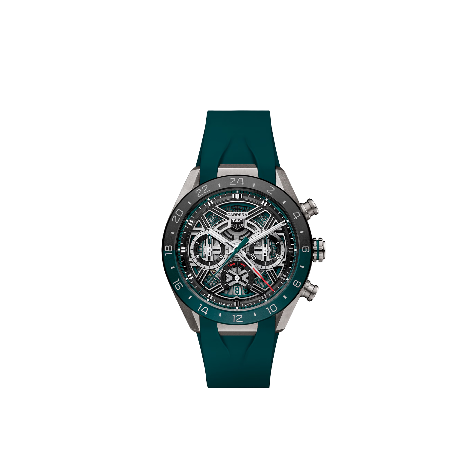 The TAG Heuer Carrera Chronograph Extreme Sport Twin-Time redefines performance with a motorsport-inspired design. Featuring a bold teal green aesthetic and cutting-edge technology, this 44mm timepiece exemplifies the Swiss Maison’s bold fusion of precision engineering and style.