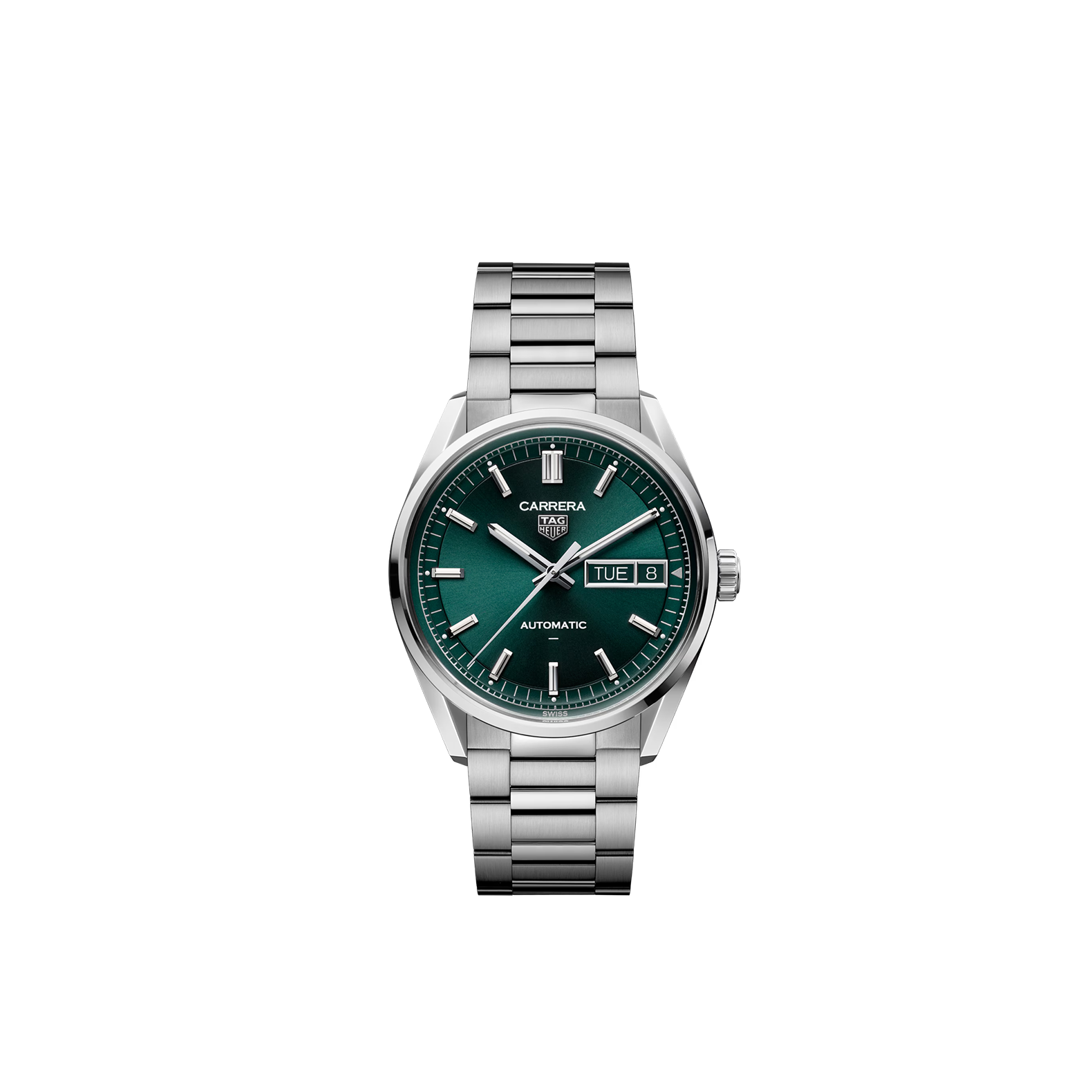 Elegant and refined the TAG Heuer Carrera Day-Date pairs its deep green sunray-brushed dial with the manufacture Calibre TH31-02 movement. Designed for enduring precision and effortless style, this refined 41mm model captures the TAG Heuer Carrera’s timeless spirit and contemporary sophistication.