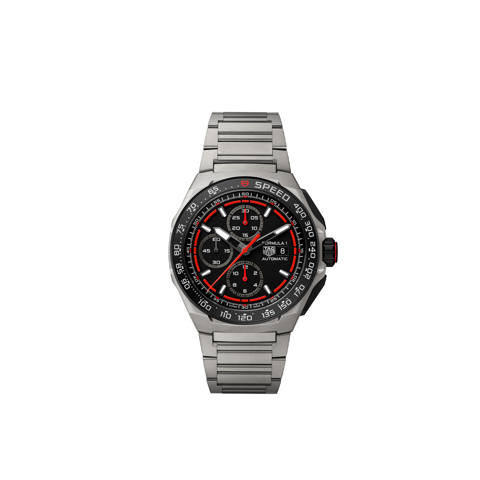 Built for boldness, this striking TAG Heuer Formula 1 Chronograph fuses titanium strength with sports-driven energy. This 44 mm diameter watch powered by the automatic Calibre 16 is designed to conquer speed, style, and every challenge in between.