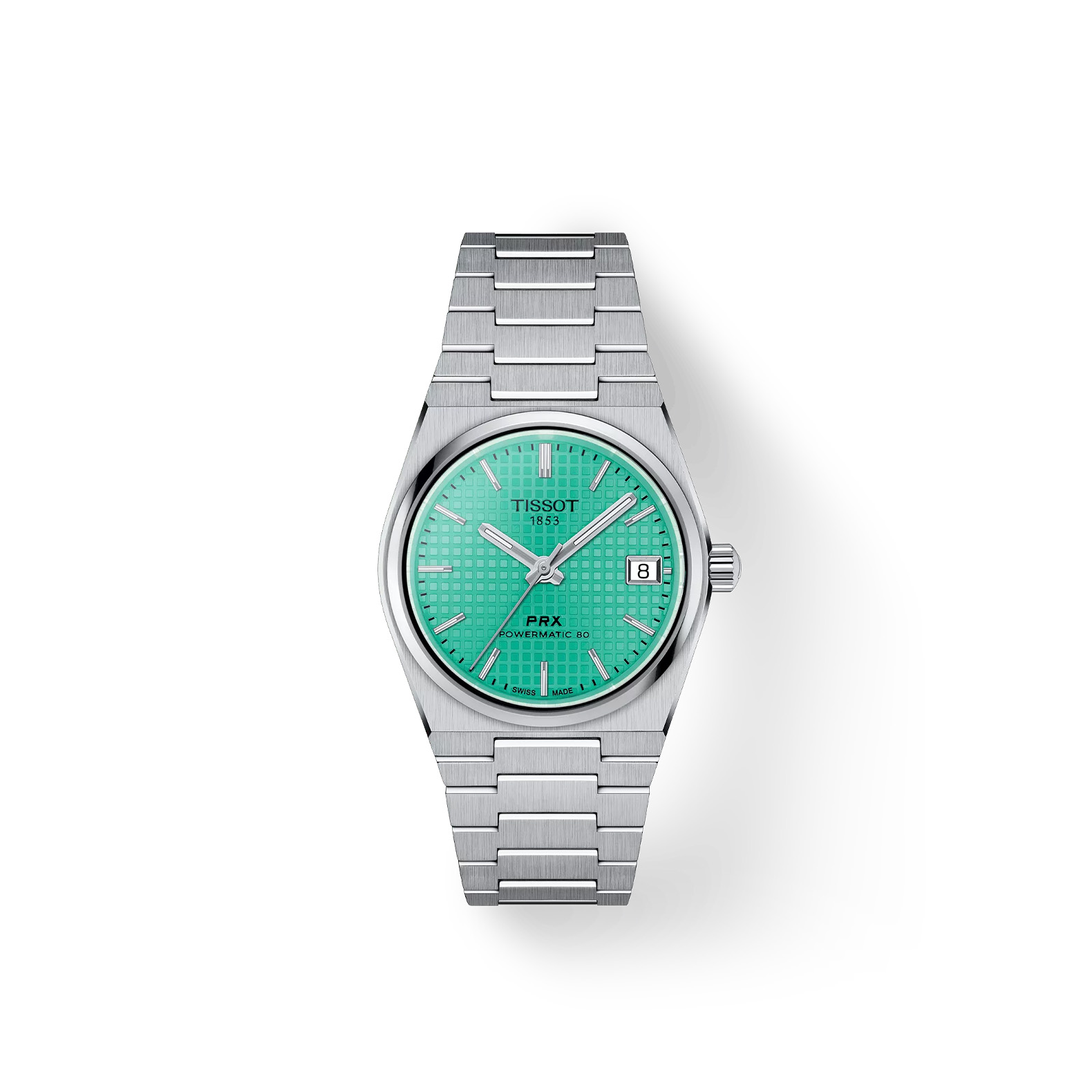 Tissot PRX 35mm Powermatic 80, a harmonious blend of nostalgic glamour and contemporary ingenuity. This 35mm watch features a high-quality gold-PVD case and a striking gold coloured dial. The gold variant, bold and purposeful, brings an undeniable dash of audacity to this automatic model. The waffle dial pattern lends further distinction to this timepiece. With water resistance up to 100 meters and a Nivachron™ balance hairspring, the PRX is an exquisite piece for those who appreciate the art of watchmaking. The satin-finish steel bracelet with a triple-blade folding steel clasp guarantees unyielding comfort. Be bold with the Tissot PRX 35mm Powermatic 80 in gold-PVD.